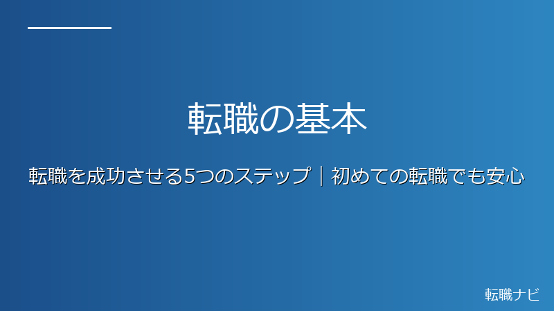 転職成功のカギは「焦らず計画的に進めること」です。自己分析→市場調査→エージェント活用→書類作成→面接対策という5ステップを丁寧に踏むことで、初めての転職でも納得できる結果を得られます。転職活動の平均期間は3〜6ヶ月。じっくり取り組みましょう。
